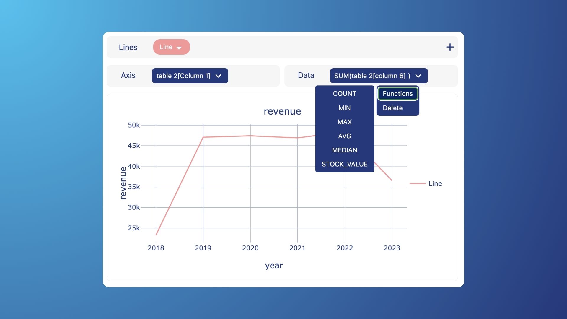 Functions, on the other hand, enable users to perform calculations or transformations on the data within a data chip or a chart. These functions can range from simple mathematical operations like summing or averaging to more complex operations involving conditional statements or aggregations. For example, users might apply a function to calculate the total revenue generated by a product line or to determine the average customer satisfaction score for a particular service.